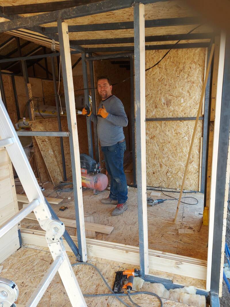Onze eerste bouwwerk ooit! We hebben beide twee linkerhanden... tenminste we hebben nooit echt geklust, terwijl onze vaders allebei erg handig zijn. We hebben wel is een kwast vastgehad of een klein vloertje gelegd, maar that´s it! We hebben het denk ik nooit geleerd en dus kunnen we het niet, denken we! Maar daar gaan we verandering in brengen, ook een goede reden dat we zijn geëmigreerd!