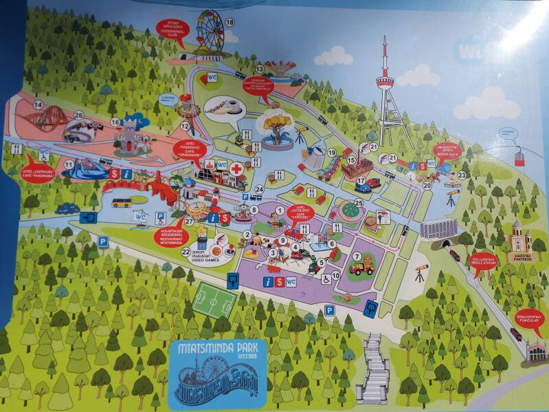 Op de top van de berg Mtatsminda ligt het hoogst gelegen pretpark van Tbilisi, namelijk Mtatsminda Park. Op de heuvel heb je prachtig uitzicht over de Georgische hoofdstad maar daar geven de kinderen echt niet om als ze weten wat je allemaal kan doen in het Mtatsminda Park. Het heeft er van alles, een reuzenrad (met weer super mooi uitzicht), een achtbaan (voor jong en oud), draaimolens, botsauto's (voor jong en oud), een enorme waterglijbaan, water speeltuin, wagonnetjes voor de kleinsten, schiettenten en speeltuinen. Je kan er heerlijk zitten om wat te eten en/of te drinken.